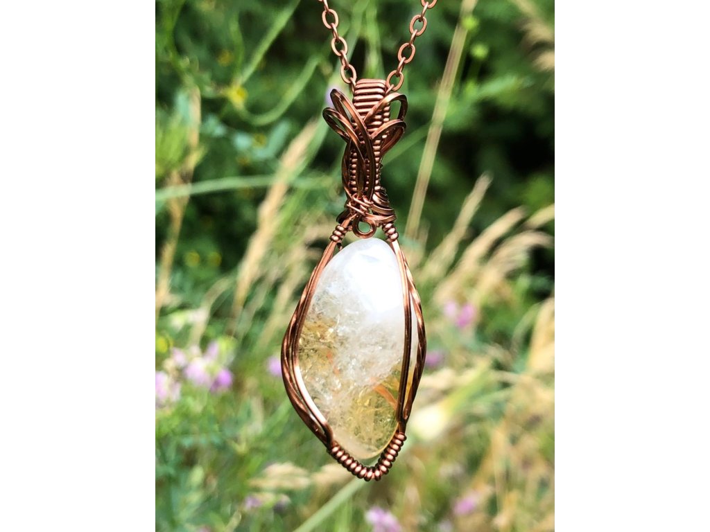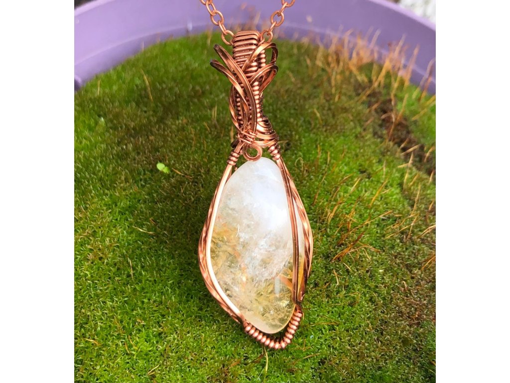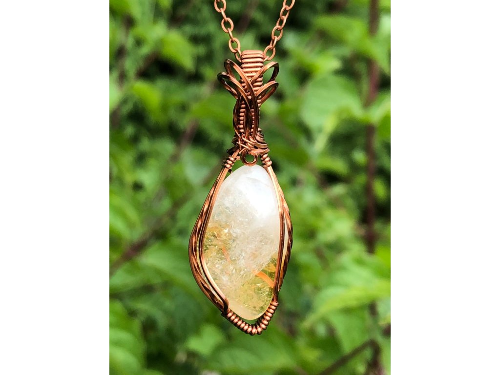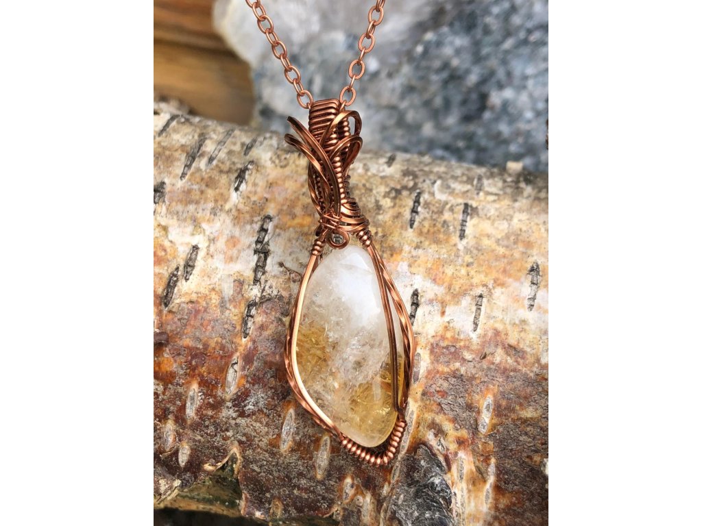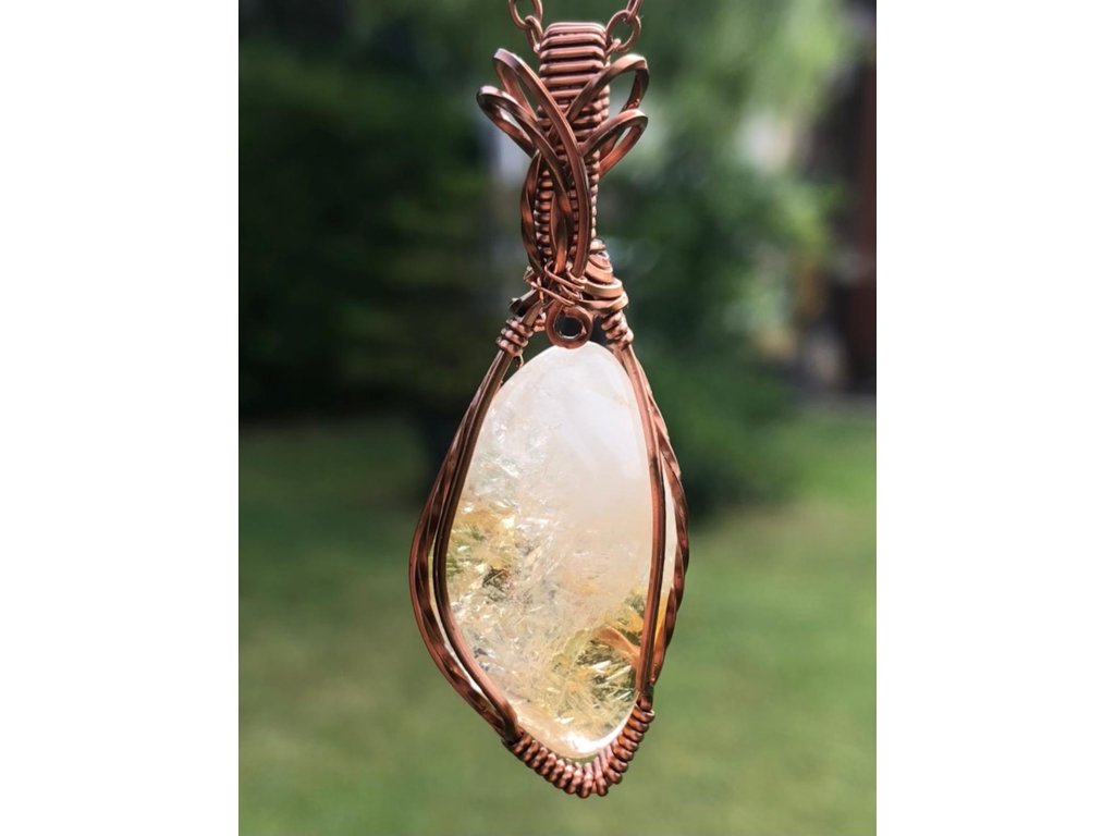 Na tento šperk jsem použila tromlovaný valounke o rozměrech 2,8 x 1,7. Použité drátky jsou z lakované mědi v barvě antické mědi.
