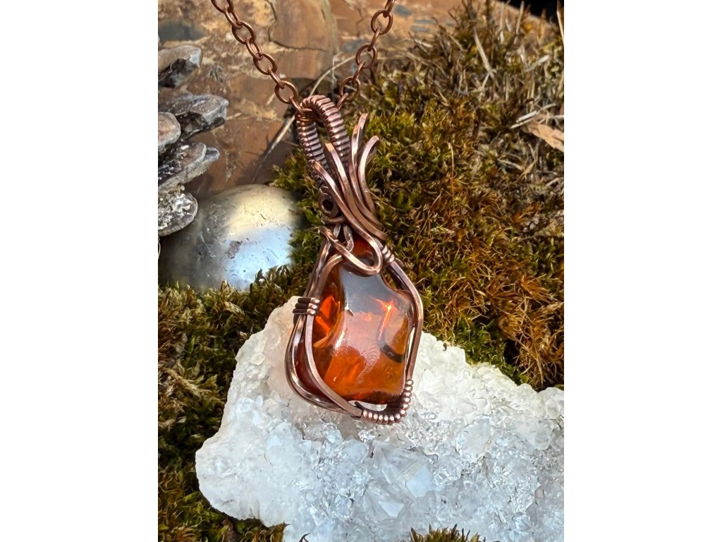 Přísně vzato jantar ve skutečnosti není krystal. Jedná se o ztuhlou a zkamenělou pryskyřici stromů. Má silné spojení se zemí a je vodičem vyšších energií. Jantar má silnou léčivou a očistnou moc, která z těla vyhání nerovnováhu a posiluje uzdravení. Rovněž očišťuje prostředí. Pohlcuje negativní energie a proměňuje je v pozitivní síly, které podněcují tělo, aby se samo uzdravovalo. Coby mocný ochránce zajišťuje ustavičný kontakt pozemského těla s vyšší duchovní realitou. V duševní rovině přináší jantar do života stabilitu, ale současně podněcuje ke spojení s tím, po čem toužíme, a pohání nás k naplnění tužeb. Jeho hřejivá čirá energie se proměňuje ve zářivou spontánní aktivitu. Napomáhá v obraně před myšlenkami na sebevraždu nebo před sklonem k depresím.