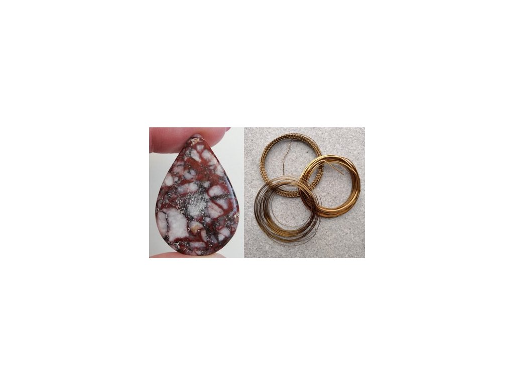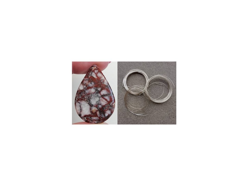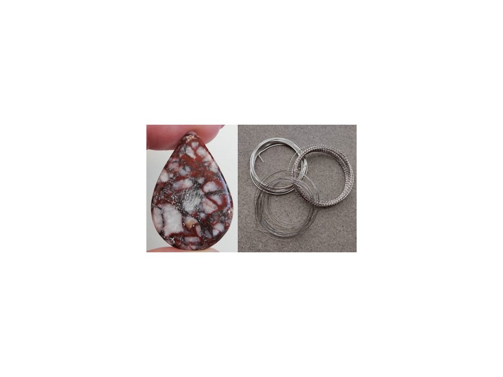 Sada obsahuje:Minerál Jaspis kokos - rozměry 3,4 x 2,4 x 0,4 cmHranatý drátek - 100 cm / kroucený drátek - 25 cm / půlkulatý drátek - 100 cm.