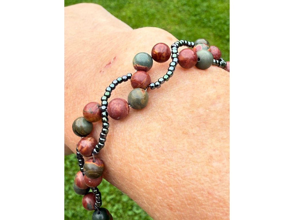 Jaspis pomáhá při šamanských cestách a vybavování snů. Zajišťuje ochranu a uzemňuje energie těla, je ochranným kamenem před fyzickými i duševními riziky. Pohlcuje negativní energii a současně pročišťuje a uvádí do rovnováhy čakry a auru. Každá barva jaspisu přísluší jedné čakře. Na fyzické rovině prodlužuje sexuální rozkoš, potlačuje nebezpečné touhy a rozmary, přivolává štěstí. Nabízí oporu a pomoc ve stresu, přináší klid. Srovnává čakry a lze jej použít k jejich správnému nastavení. Jaspis udržuje vyvážený poměr mezi složkami jin a jang a současně zajišťuje rovnováhu duševní, citové a tělesné roviny s éterickou říší. Sjednocuje všechny aspekty života. V duševním životě přináší jaspis svému nositeli odhodlání k naplnění všech záměrů. Dodává odvahu pronikat důrazně ke kořeni problému. Současně podněcuje čestné chování k sobě samému. Nabízí pomoc během konfliktů, k nimž v životě nezbytně dochází. Napomáhá při rychlém uvažování. Zvyšuje organizační schopnosti a schopnost posuzovat věci jako celek. Povzbuzuje rozvoj představivosti a proměnu myšlenek v činy. Kromě společných druhových vlastností dodává barva jaspisu tyto rysy.