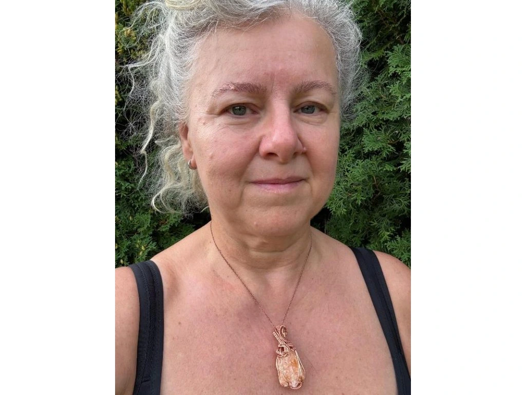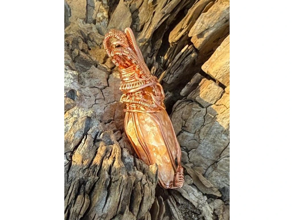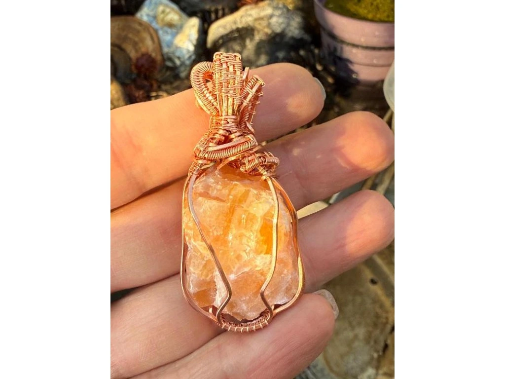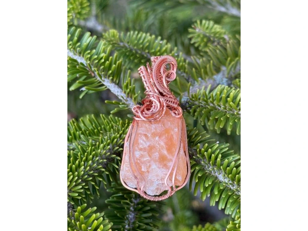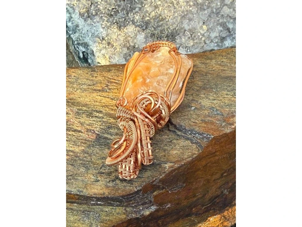 Na tento šperk je použitý nádherný surový kalcit o rozměrech 3,4 × 2,41 cm. Použité drátky jsou měděné.