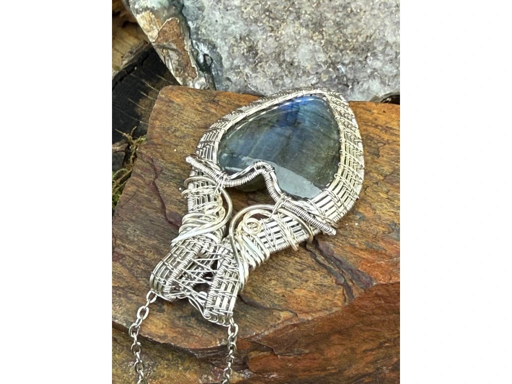 Labradorit je vysoce mystický a ochranný kámen subtilního pole, které nás obklopuje jako ochranný obal. Kdo ho zná, jen stěží se ubrání fascinaci tímto na první pohled spíše nevýrazným šedým kamenem. Teprve, když ho pozorujeme ve správném světle, odhalíme jeho tmavomodrý svit připomínající nekonečnou hloubku moře. Odklání nežádoucí energie od aury a brání úniku energie. Krystal podporuje rozvoj intuice a duševních darů včetně umění „správného načasování". Posiluje víru v sebe sama i v celý vesmír. Labradorit nám umožňuje vyrovnat se s minulostí a podporuje růst naší osobnosti. Stejně jak na svém povrchu ukazuje barevné lesky, tak i v nás probouzí kreativitu. V psychické rovině navozuje Labradorit pocit odpoutání od každodenní rutiny, rozšiřuje naše obzory a otevírá cestu pro splnění snů a nápadů, pomáhá nám zklidnit mysl i nepokojnou duši. Léčitelé ho doporučují na odstranění blokád, stresu a depresí. Pomáhá nalézt ta správná slova, např. ve zkouškovém období. Labradorit je individualista mezi kameny, má-li nám být pomocníkem, nesnese ve své blízkosti žádný jiný minerál kromě vlastního druhu.