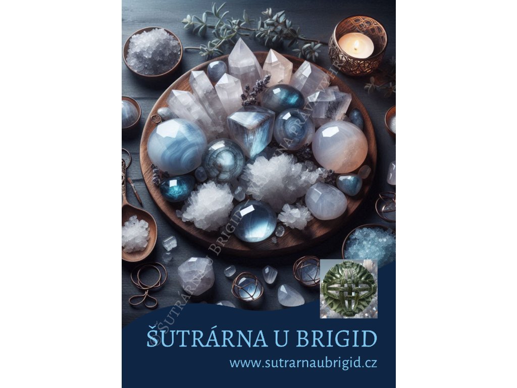 - Fotografie dostupných krystalů v Šutrárně u Brigid, které lze koupit nebo zakomponovat do šperků