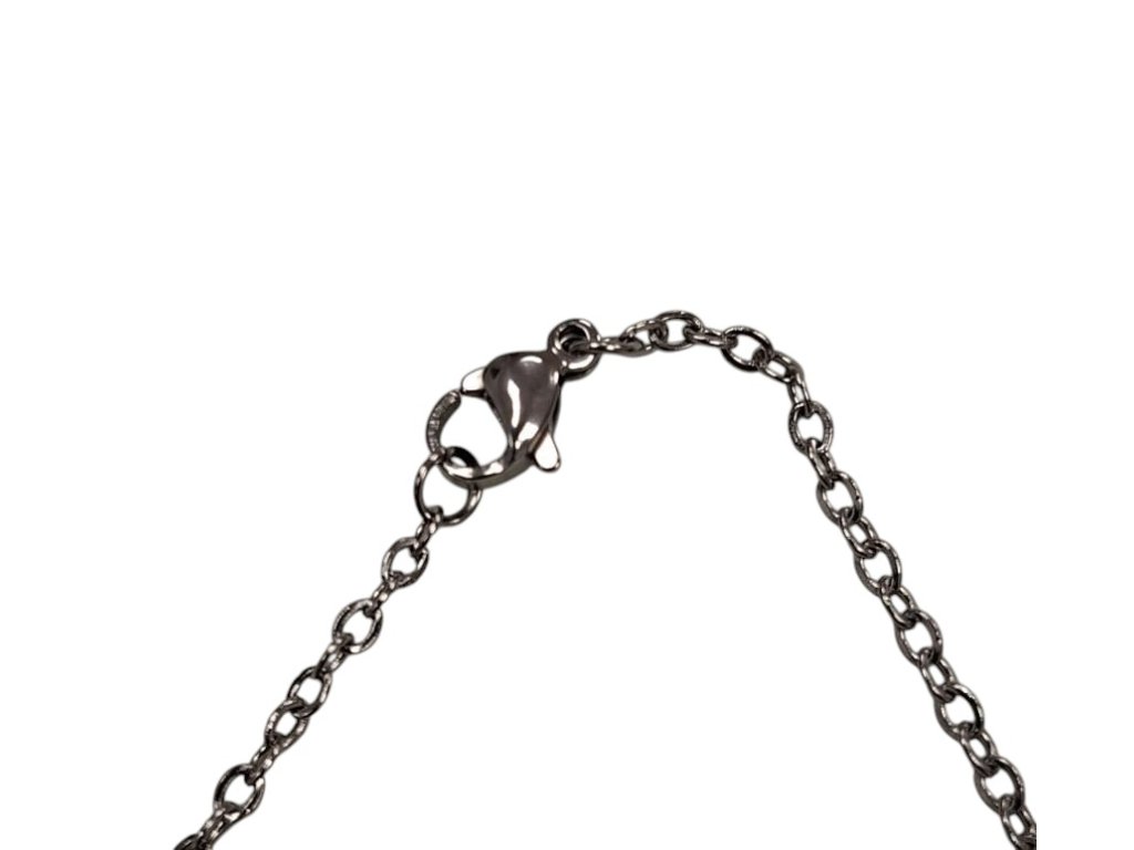 Řetízek je vyroben z kvalitní nerezové oceli (stainless steel), která je barevně stálá, odolná proti korozi a hypoalergenní – tedy vhodná i pro citlivou pokožku. Jednotlivá očka měří přibližně 2,15 × 2,64 mm a spojena jsou jemným, ale pevným článkováním. Zapínání je řešeno karabinkou.