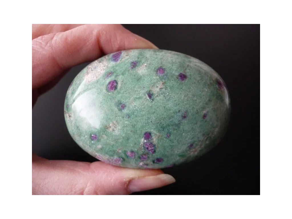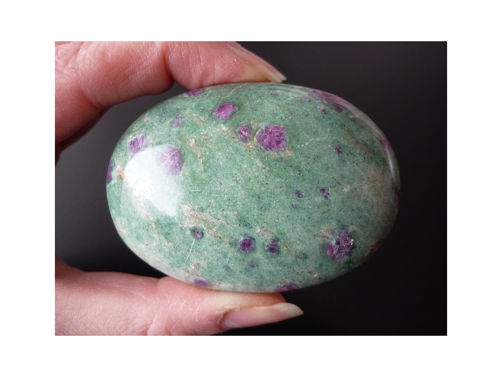 Rubín ve Fuchsitu byl objeven na trhu až v roce 2004, pochází z jižní Indie a je tvořen rubínovými zrny v zelené hornině Fuchsitu. Kombinace energií Rubínu a Fuchsitu nabízí silnou emocionální podporu a sebereflexi v těžkých časech. Rubín, který nabízí nekonečnou odvahu a sílu v kombinaci s relaxačními a výživnými vibracemi Fuchsitu, pocítíte okamžitě. Tento krystal začne pracovat na uzdravení vašeho emocionálního těla a zmírní veškerou tíhu, kterou nosíme na srdci kvůli traumatu. Fuchsit je kámen, který usnadňuje přenos energie z jiných minerálů, což umožňuje zesílené účinky bez ohledu na to, s jakým kamenem je kombinován. Je to kámen ochrany, zbavuje napětí a stresu, odstraňuje pocity prohry a pokoření, dává sílu zvládnout sám své problémy, dává pocit uvolněnosti, rozvíjí intuici, dodává sebedůvěru a nadhled. Vhodný na kožní problémy, alergie, záněty, detoxikaci, anémii.
