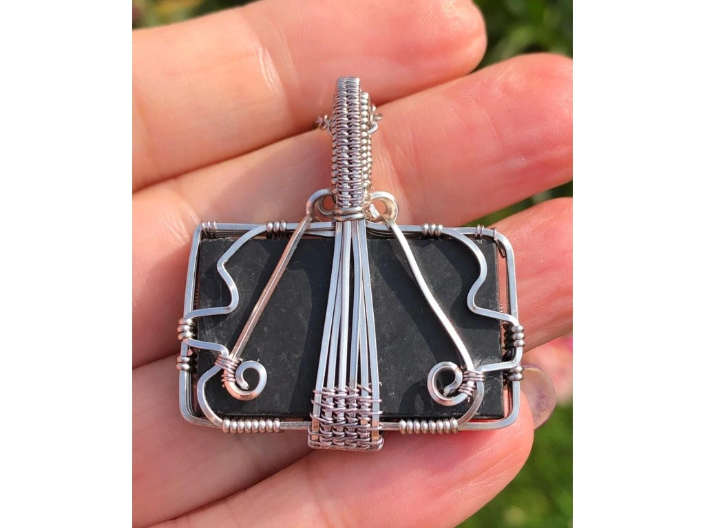 Netradiční obdélníkový tvar perleti o velikosti 3,3 x 1,9 cm jsem použila na další šperk. Použité drátky jsou lakovaná měď v barvě titanu.
